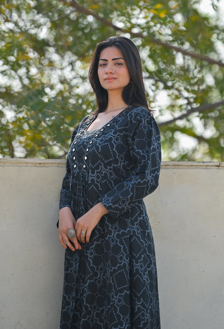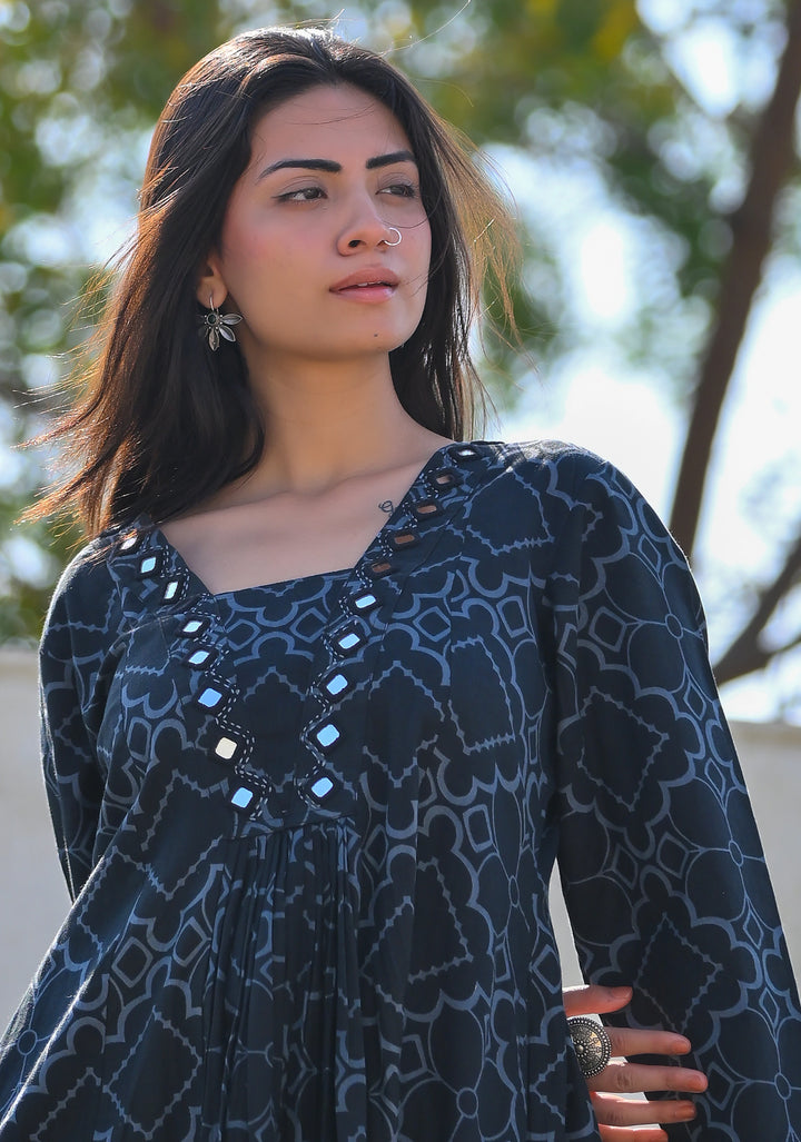 Flared Dress With Mirror Work